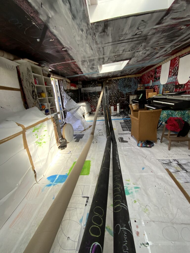 For years, Gyan’s artistic palette was deliberately constrained to black and deep red or burgundy tones. Then, however, his chromatic vocabulary has expanded considerably. He now incorporates vibrant yellows, rich greens, and bold blues, often creating striking and unexpected color combinations through adventurous mixing techniques. His approach to color has become increasingly experimental—he will dedicate…