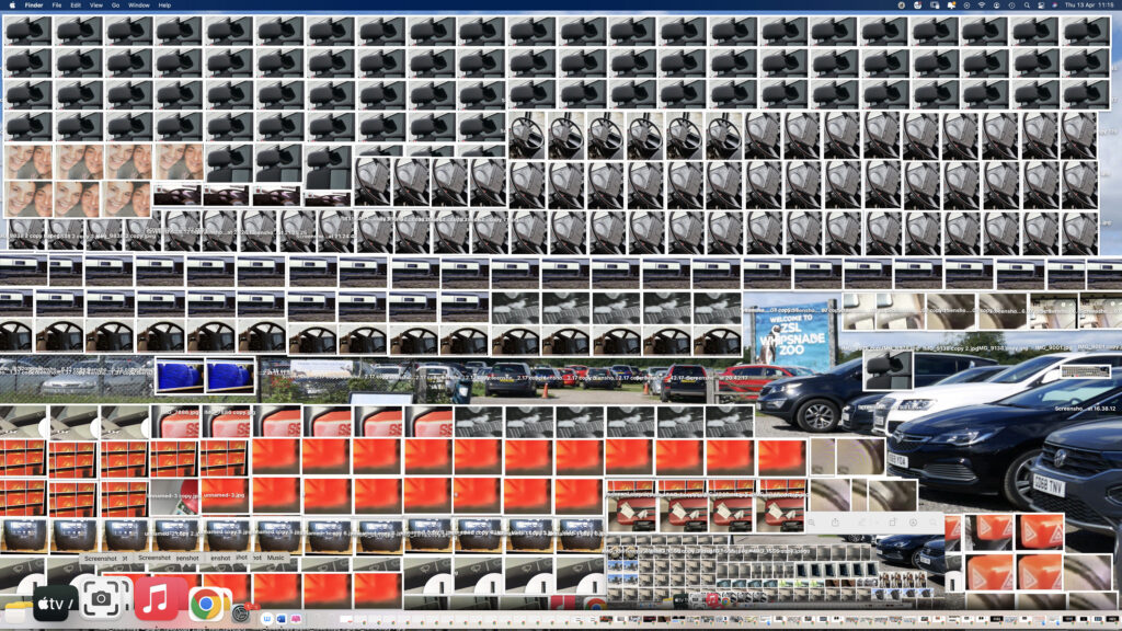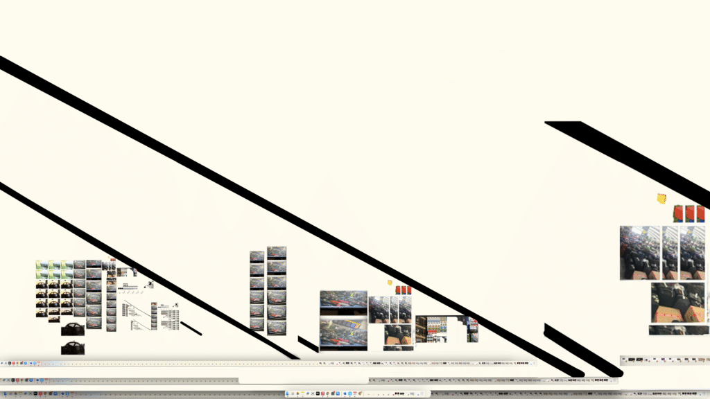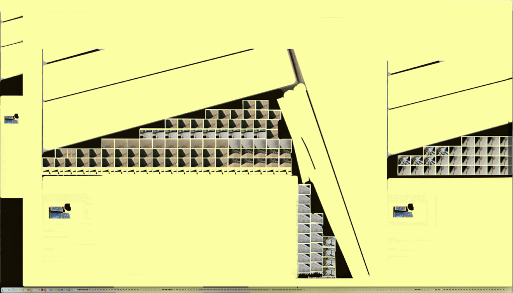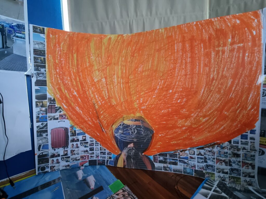 Now his digital art has evolved into a mix of picture thumbnails combined with on-screen drawings, creating digital collages that mirror the layered complexity of his physical artwork. After he decides his project is finished, he takes a screenshot of the work and sets it as wallpaper on his computer and laptop screens.