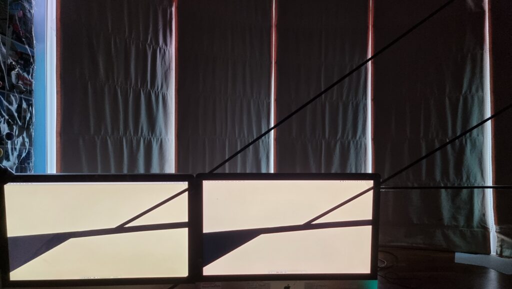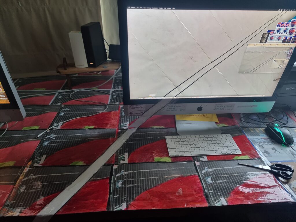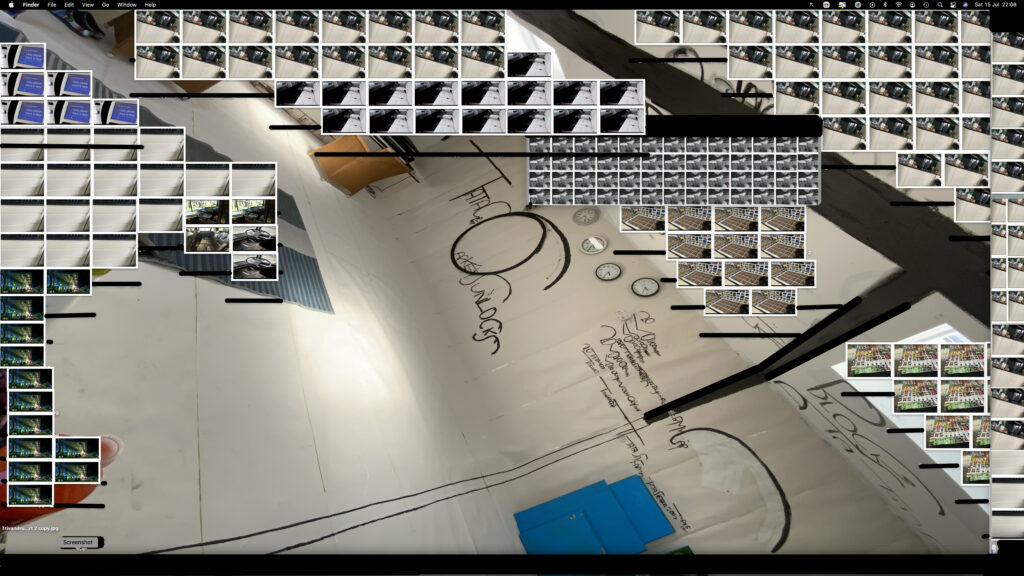 What’s on the screen isn’t contained to it alone—Gyan blurs borders and extends his vision beyond conventional boundaries. So what is seen on screen sometimes has its extension farther into the room, as seen in this picture.