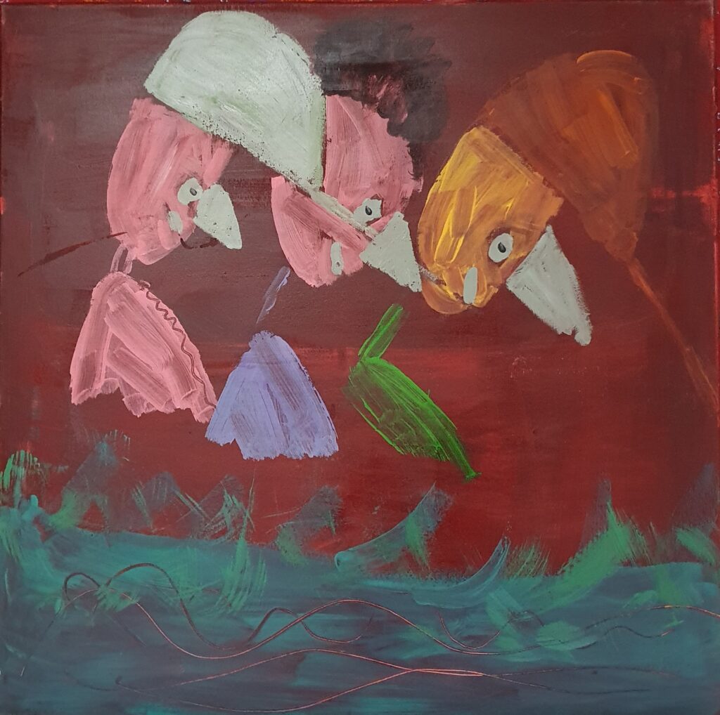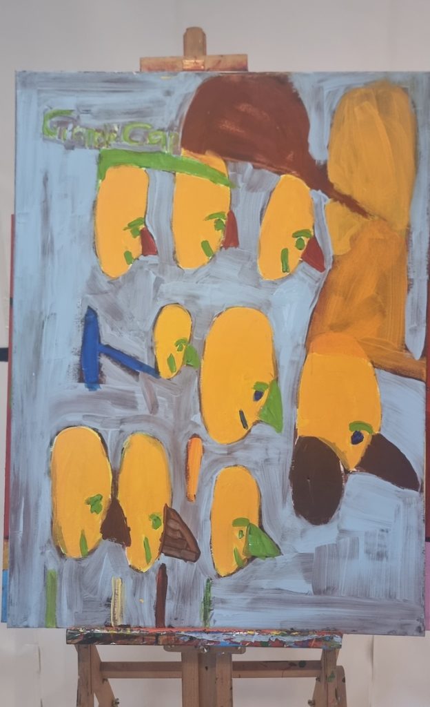 Gyan has a particular eye for people in caps and hats, capturing them in his paintings with careful attention to brims and visors. He often emphasizes them in his artwork. His fascination traces back to a beloved childhood character—Postman Pat, with his cap. Something about that simple hat sparked an artistic obsession that continues to this day. Pat’s cap became the gateway to a whole world of headwear in Gyan’s art. Now, whenever we embark on day trips, caps have become our unofficial uniform—a playful tradition that connects our adventures to his art!