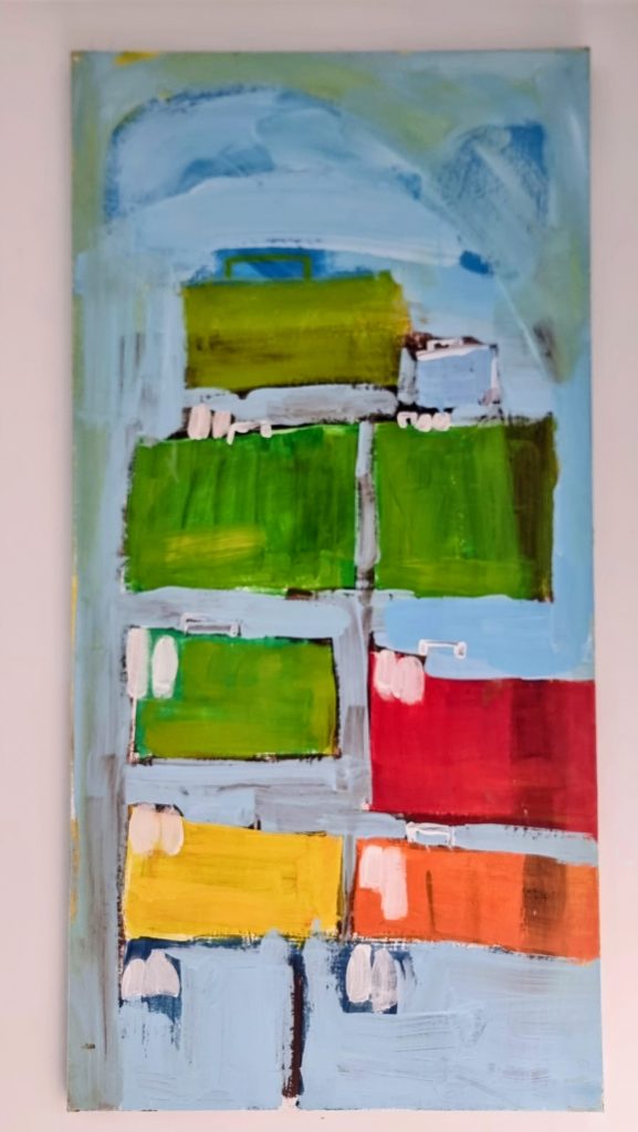 Gyan loves planning travels all around the world. His fascination with travel is also visible in his art. So, apart from transportation and airports, he also paints a necessary addition to travel: suitcases. They are essential!