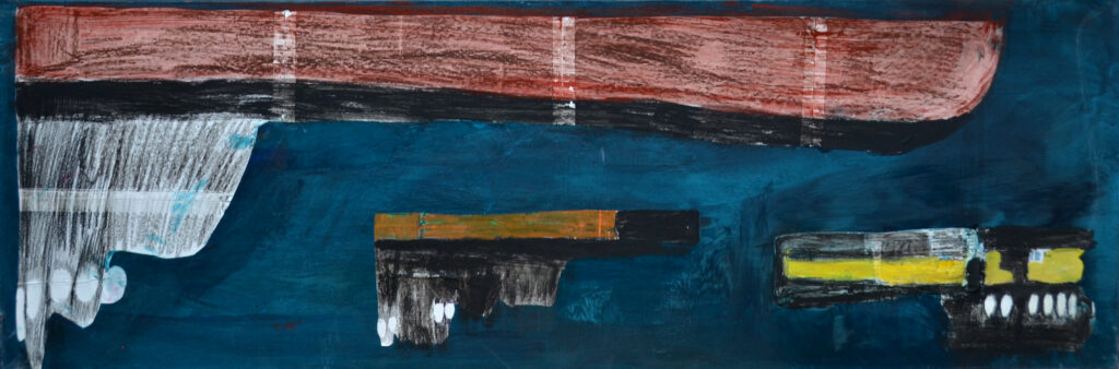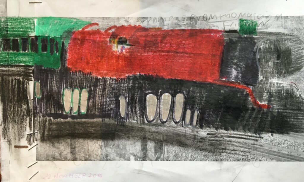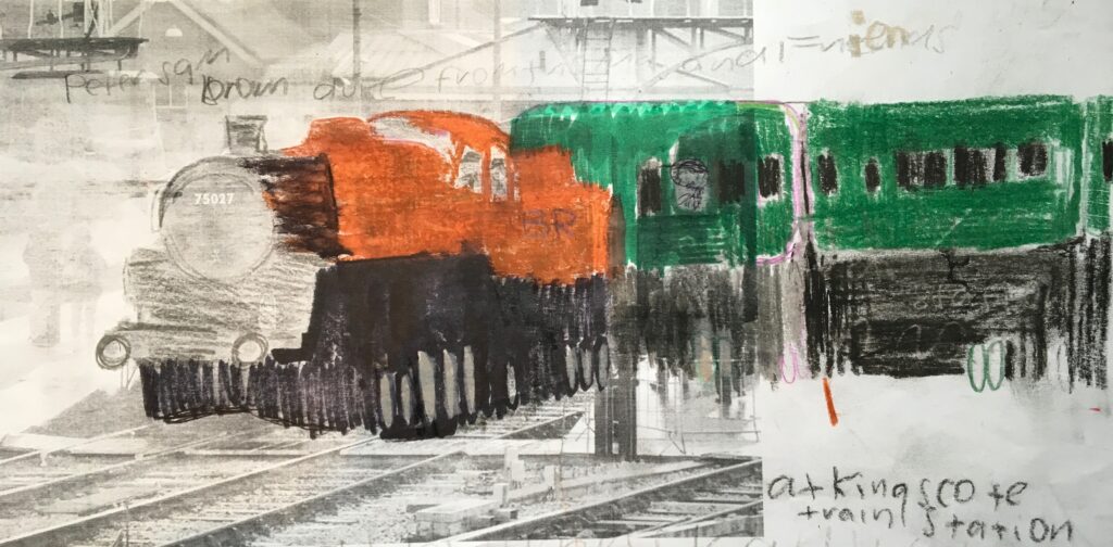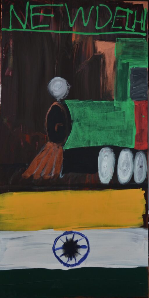 Gyan is drawn to steam trains for their powerful aesthetic and rich sensory appeal. The intricate designs, exposed mechanisms, and prominent features like large driving wheels and pison offer visual inspiration for his art. The firebox, boiler and moving parts provide the kind of detailed, exaggerated elements that characterize his painting style. Steam trains’ immersive sensory experience – the roar of steam, rhythmic chugging, and distinctive sounds – appeals to his fascination with dynamic, expressive subjects that fill his canvases with energy and movement.