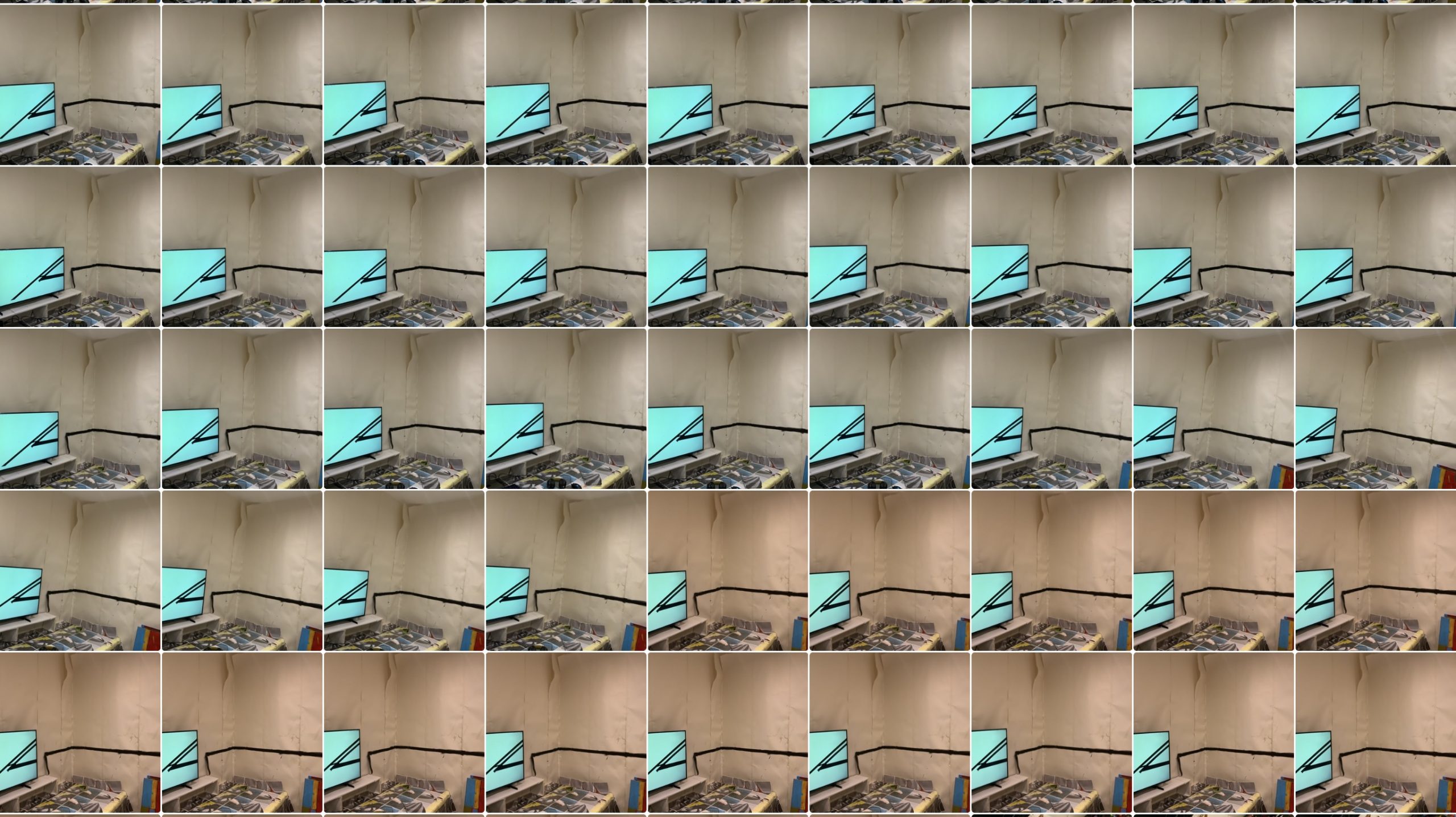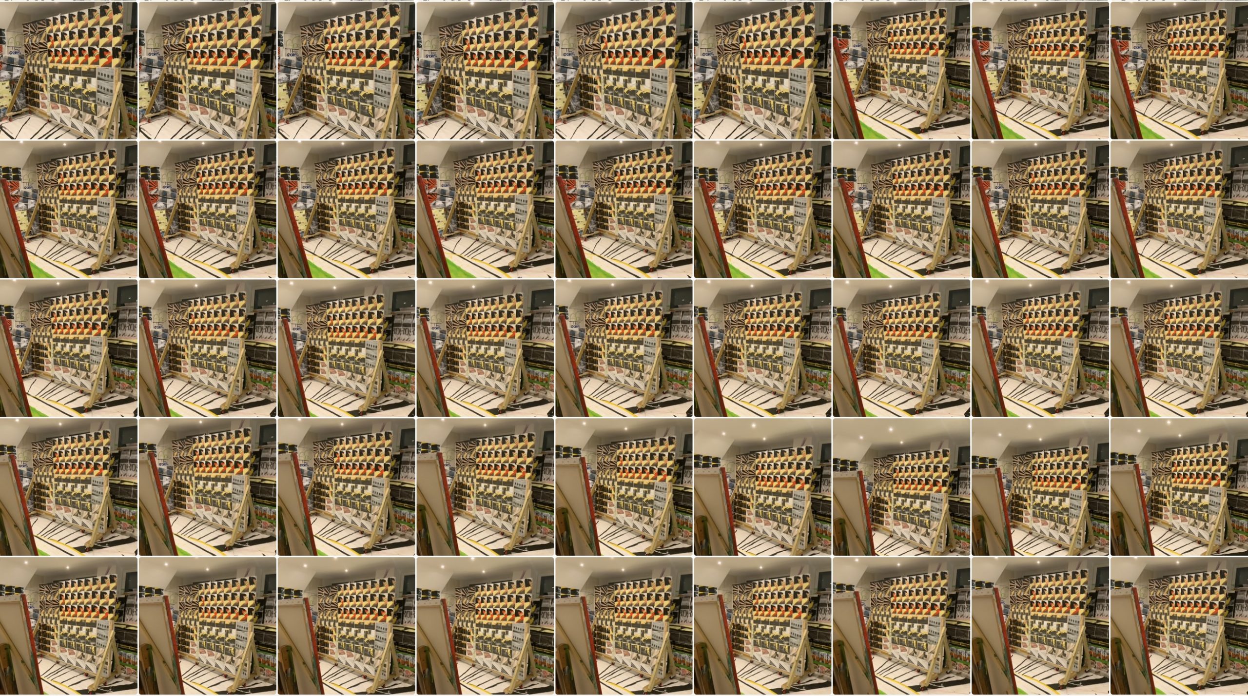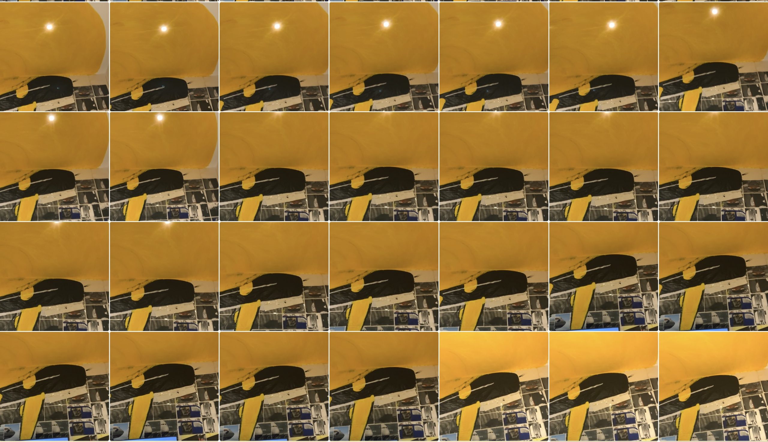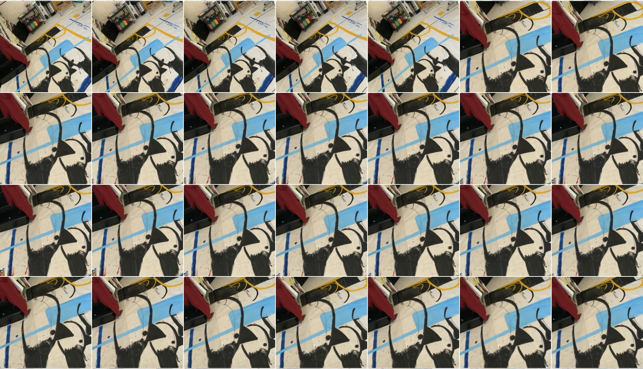 Patchwork: Gyan fills his space with collages of prints and paintings, often featuring repeated motifs. He then photographs this space—actually taking dozens of pictures of the same frame. The result: his art room becomes a subject itself, transformed into pictures that appear as patchwork compositions.